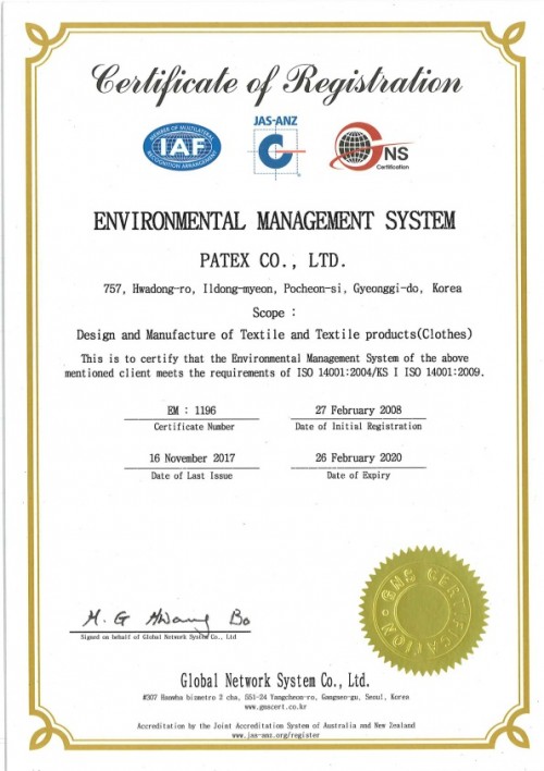 Obtain certification "ISO 14001" 페이지 정보 작성자 관리자 댓글 0건 조회 2,397회 작성일 18-06-22 11:05 본문 DATE 2016.11.22 ~ 2018.09.14 CONTENTS 환경경영시스템 인증서 내용없음